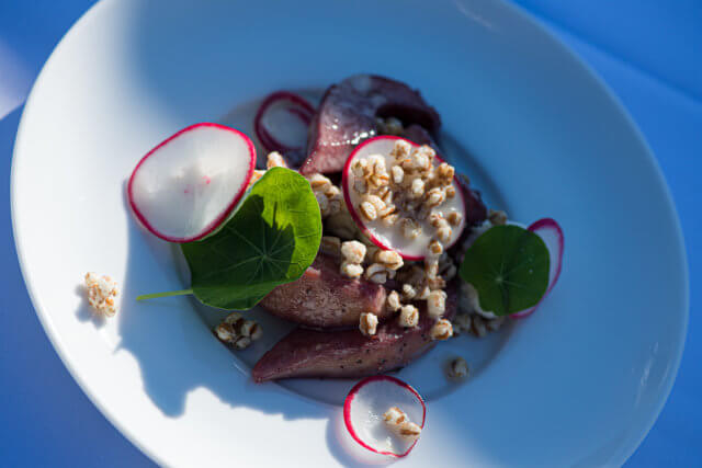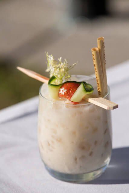 Im Laufe des Menüs wurden eigens kreierte Mostviertler Getränke serviert, inklusive reinsortiger Birnenmoste, ausgezeichneter Bio-Destillate aus dem Hause Farthofer und Wein vom Bioweingut Rudi Hofmann aus dem Traisental.