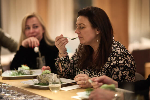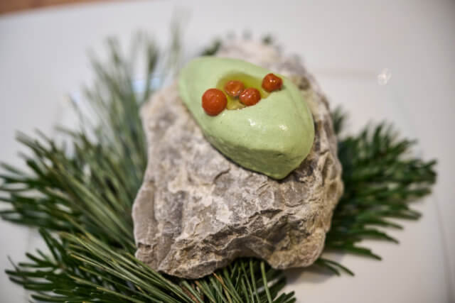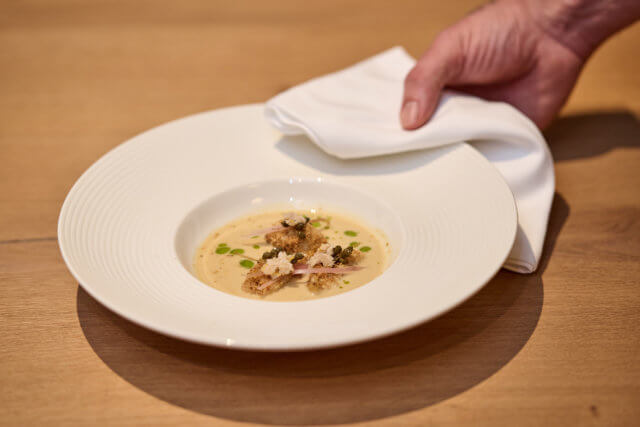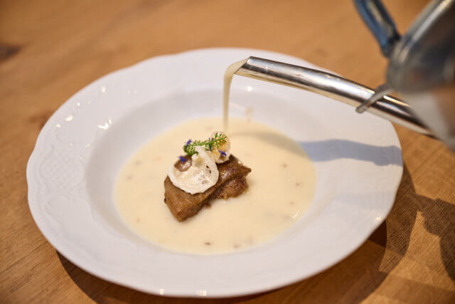 An diesem Abend wurde das Terroir des Mostviertels in 6 Gängen zwischen Donau & Alpen präsentiert. Von der Schweinsschnauze und Karpfenmilch zur alten Milchkuh und zum alten (faulen) Apfel. Die Getränke wurden ebenso aus dem Mostviertel mitgenommen: Birnen Pet Nat von Bernadette und Peter Haselberger, „Grinder“ (Grüner Veltliner und Syrah) vom Winzerhof Matthias Altmann, GV Fuchsenrand vom Bioweingut Hofmann, herrlicher Weißburgunder vom Ludwig Neumayer und verschiedene Rotweine aus dem Weinland Traisental.